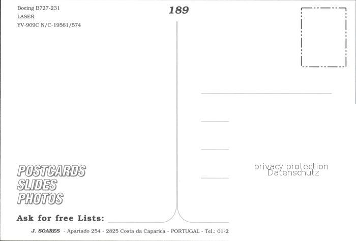 Flugzeuge Zivil Laser Boeing 727-231 YV-909C N/C-19561/574 postalisch nicht gelaufen Erhaltung siehe scans