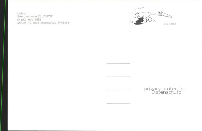 Flugzeuge Zivil Lasesco BAe Jetstream 32 ZP-PNP cn 833 postalisch nicht gelaufen Erhaltung siehe scans
