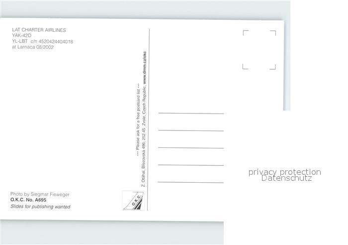 Flugzeuge Zivil Lat Charter Airlines Yak-42D YL-LBT postalisch nicht gelaufen Erhaltung siehe scans