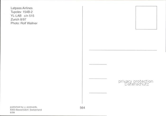 Flugzeuge Zivil Latpass Airlines Tupolev 154B-2 YL-LAB c/n 515 postalisch nicht gelaufen Erhaltung siehe scans