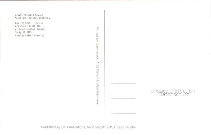 Flugzeuge Zivil Lauda Air BAC 111-525FT OE-ILD c/n 256 postalisch nicht gelaufen Erhaltung siehe scans