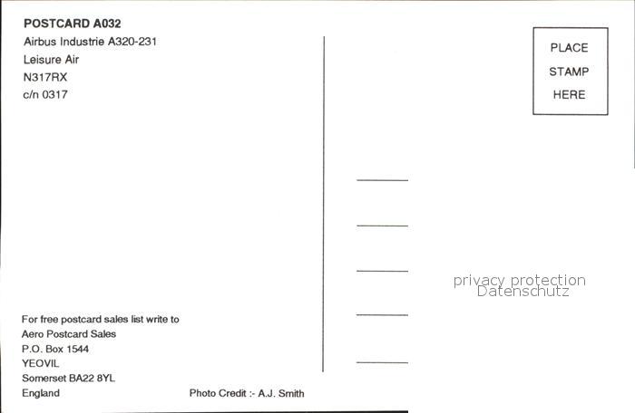 Flugzeuge Zivil Leisure Air Airbus Industrie A320-231 N317RX c/n 0317 postalisch nicht gelaufen Erhaltung siehe scans