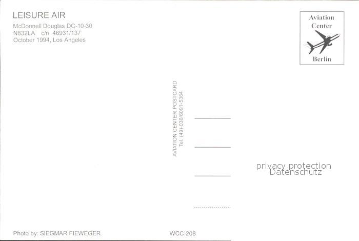 Flugzeuge Zivil Leisure Air McDonnell Douglas DC-10-30 N832LA c/n 46931/137 postalisch nicht gelaufen Erhaltung siehe scans