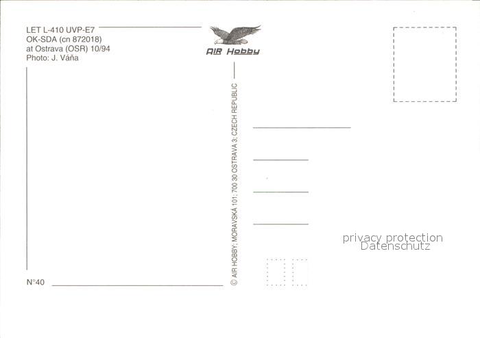Flugzeuge Zivil LET L-410 UVP-E7 OK-SDA cn 872018 postalisch nicht gelaufen Erhaltung siehe scans