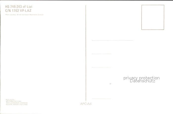 Flugzeuge Zivil Liat Caribbean Airline HS 748-243 C/N 1762 VP-LAZ postalisch nicht gelaufen Erhaltung siehe scans