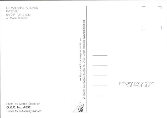 Flugzeuge Zivil Libyab Arab Airlines B-727-2L5 5A-DIF c/n 21332 postalisch nicht gelaufen Erhaltung siehe scans