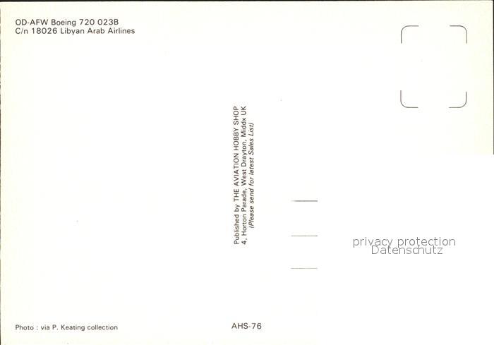 Flugzeuge Zivil Libyan Arab Airlines Boeing 720-023B OD-AFW C/n 18026 postalisch nicht gelaufen Erhaltung siehe scans