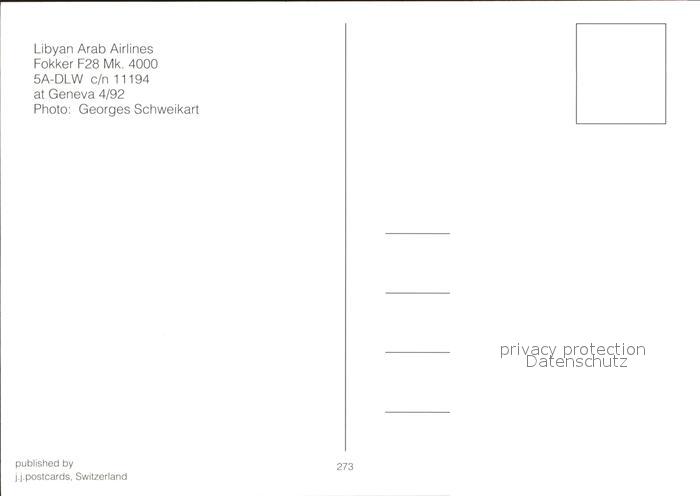 Flugzeuge Zivil Libyan Arab Airlines Fokker F28 Mk 4000 5A-DLW c/n 11194 postalisch nicht gelaufen Erhaltung siehe scans