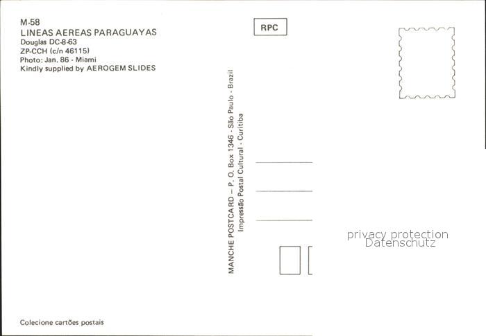 Flugzeuge Zivil Lineas Aereas Paraguayas Douglas DC-8-63 ZP-CCH c/n 46115 postalisch nicht gelaufen Erhaltung siehe scans