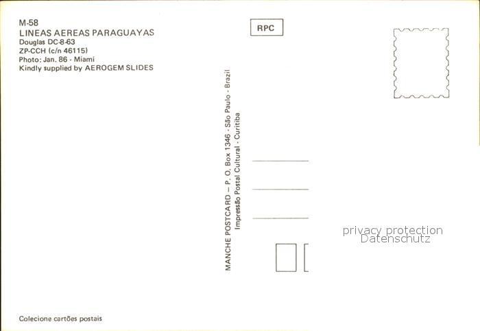 Flugzeuge Zivil Lineas Aereas Paraguayas Douglas DC8-63 ZP-CCH c/n 46115 postalisch nicht gelaufen Erhaltung siehe scans