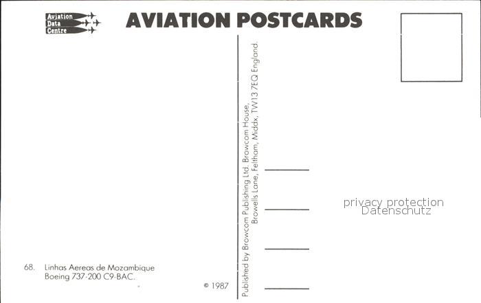 flugzeuge zivil Linhas Aereas de Mozambique Boeing 737-200 C9 BAC. postalisch nicht gelaufen Erhaltung siehe scans