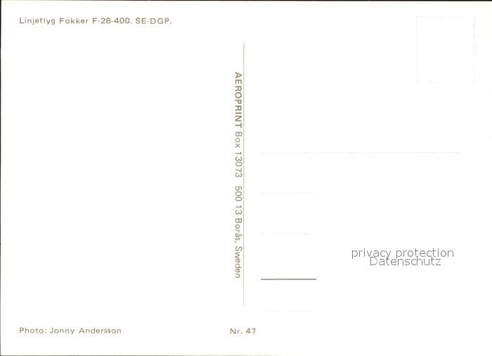 Flugzeuge Zivil Linieflyg Fokker F-28ae-400 SE-DGP postalisch nicht gelaufen Erhaltung siehe scans