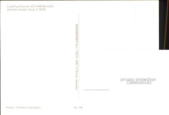 Flugzeuge Zivil Linjetflyg Convair CV-440 SE-CCO postalisch nicht gelaufen Erhaltung siehe scans