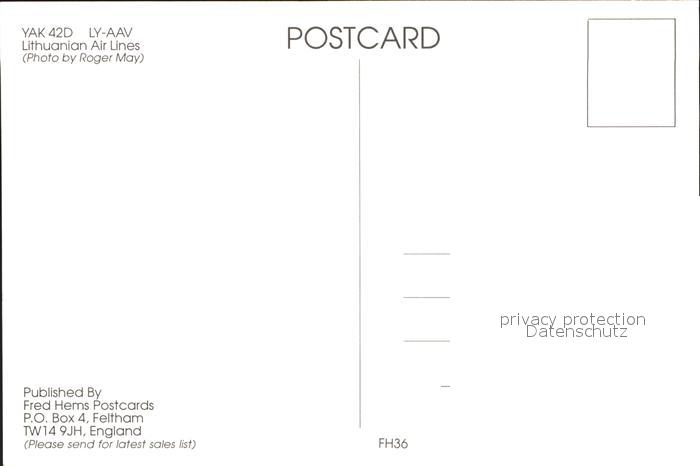 Flugzeuge Zivil Lithuanian Air Lines YAK 42D LY-AAV postalisch nicht gelaufen Erhaltung siehe scans