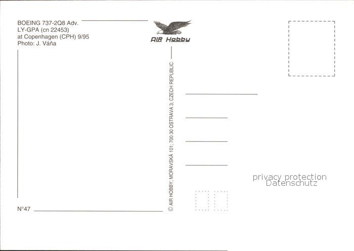 Flugzeuge Zivil Lithuanian Airlines Boeing 737-2Q8 Adv.LY-GPA cn 22453 postalisch nicht gelaufen Erhaltung siehe scans