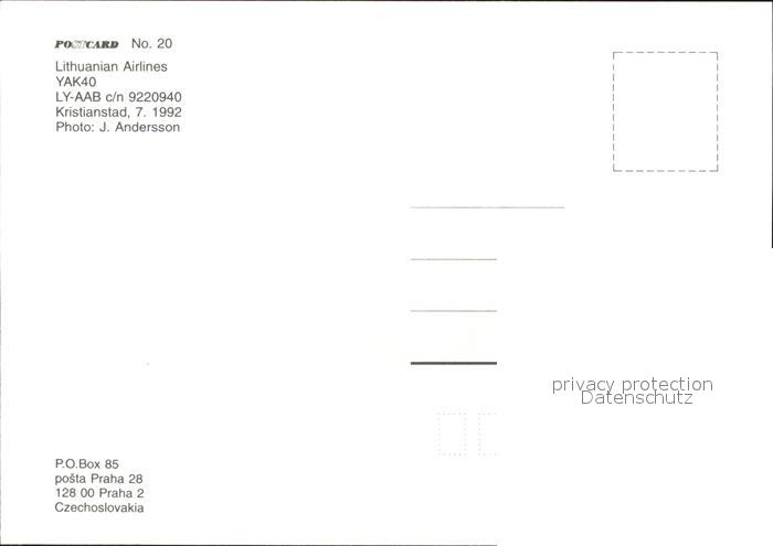 Flugzeuge Zivil Lithuanian Airlines YAK40 LY-AAB c/n 9220940 postalisch nicht gelaufen Erhaltung siehe scans
