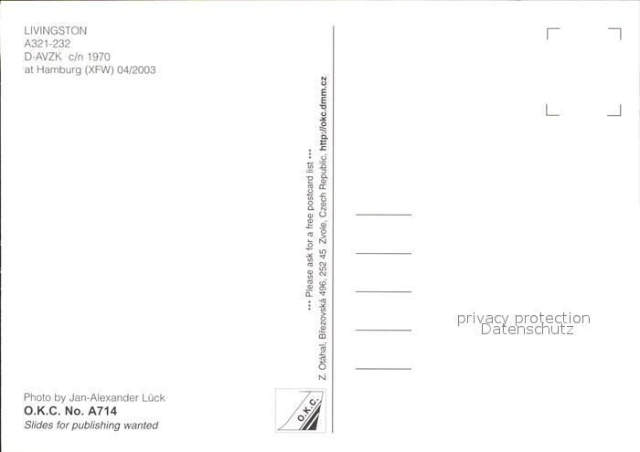 Flugzeuge Zivil Livingston A321-232 D-AVZK c/n 1970 postalisch nicht gelaufen Erhaltung siehe scans