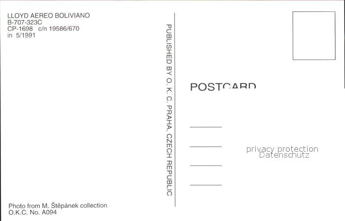Flugzeuge Zivil Lloyd Aereo Boliviano B-707-323C CP-1698 c/n 19586/670 postalisch nicht gelaufen Erhaltung siehe scans