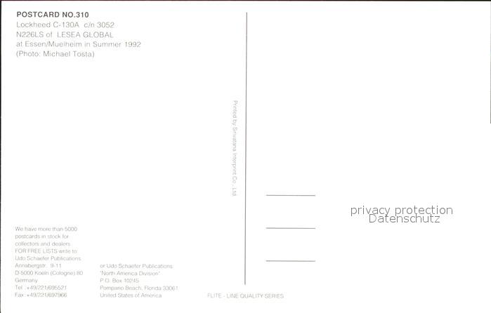 Flugzeuge Zivil Lockheed C-130A c/n 3052 N226LS Lesea Global postalisch nicht gelaufen Erhaltung siehe scans