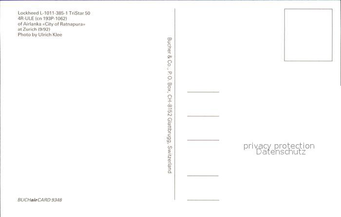 Flugzeuge Zivil Lockheed L-1011-385-1 TriStar 50 4R-ULE (cn 193P-1062) Airlanka City of Ratnapura postalisch nicht gelaufen Erhaltung siehe scans