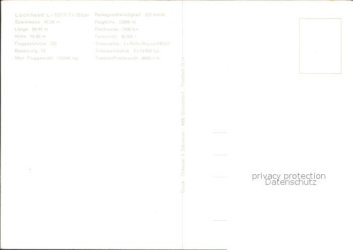 Flugzeuge Zivil Lockheed L-1011 TriStar postalisch nicht gelaufen