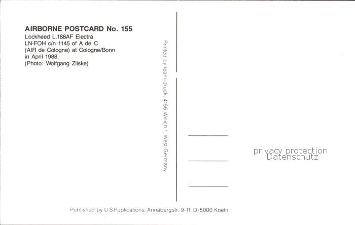 Flugzeuge Zivil Lockheed L.188AF Electra LN-FOH c/n 1145 A de C Air de Cologne postalisch nicht gelaufen Erhaltung siehe scans