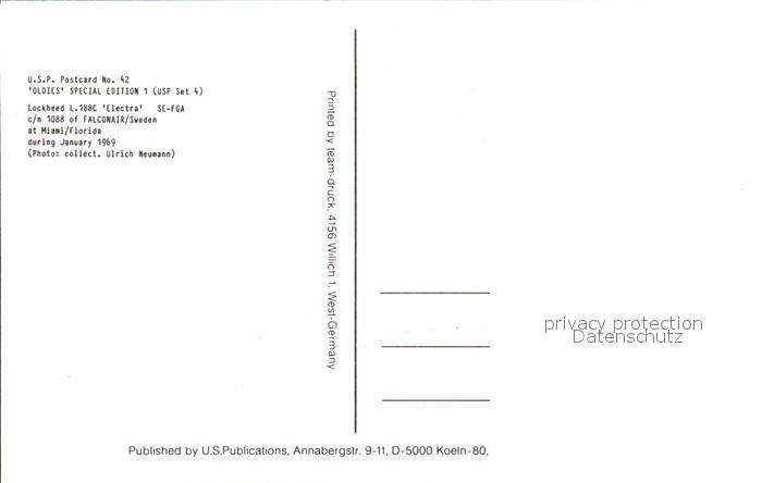 Flugzeuge Zivil Lockheed L.188C Electra SE-FGA c/n 1088 Falconair Sweden postalisch nicht gelaufen