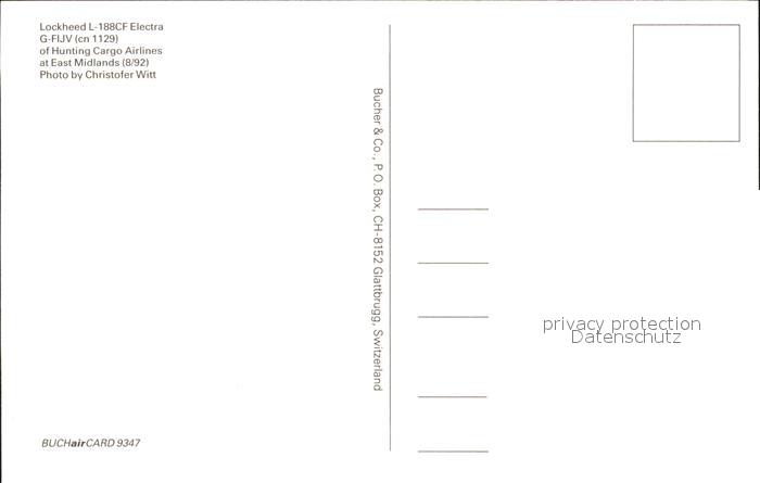 Flugzeuge Zivil Lockheed L-188CF Electra G-FIJV ( cn 1129) Huting Cargo Airlines postalisch nicht gelaufen