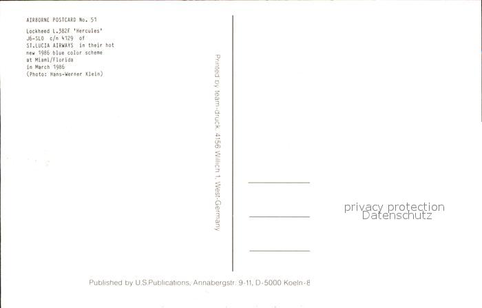 71809096 Flugzeuge Zivil Lockheed L. 382F Hercules J6-SL0 c/n 4129 St. Lucia Airways KatCode 22120000001300