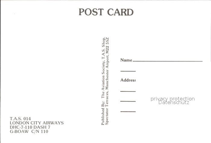 Flugzeuge Zivil London City Airways DHC-7-110 Dash 7 G-BOAW C/N 110 postalisch nicht gelaufen Erhaltung siehe scans
