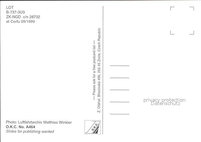 Flugzeuge Zivil LOT B-737-3U3 ZK-NGD c/n 28732 postalisch nicht gelaufen Erhaltung siehe scans