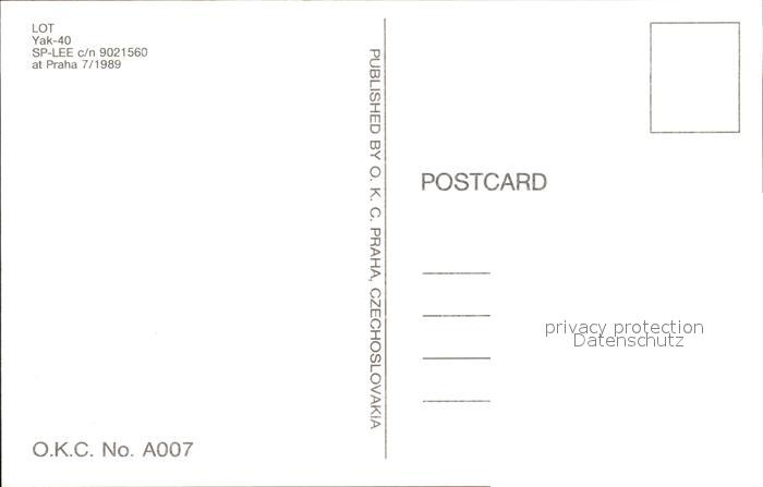 Flugzeuge Zivil LOT Yak-40 SP-LEE c/n 9021560 postalisch nicht gelaufen Erhaltung siehe scans