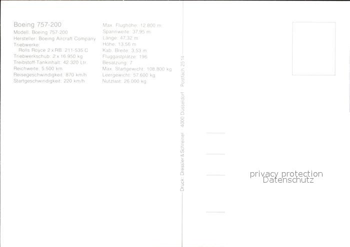 Flugzeuge Zivil LTS Boeing 757-200 postalisch nicht gelaufen Erhaltung siehe scans