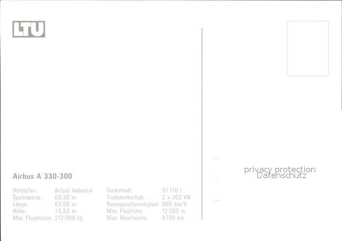 Flugzeuge Zivil LTU Airbus A 330-300 postalisch nicht gelaufen Erhaltung siehe scans