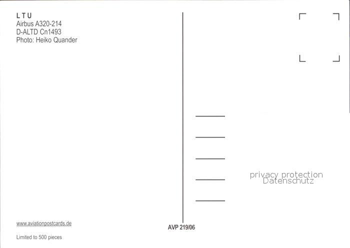 Flugzeuge Zivil LTU Airbus A320-214 D-ALTD Cn 1493 postalisch nicht gelaufen Erhaltung siehe scans