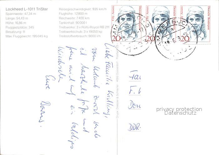 alte Postkarte Flugzeuge Zivil LTU Lockheed L-1011 TriStar postalisch gelaufen Erhaltung siehe scans