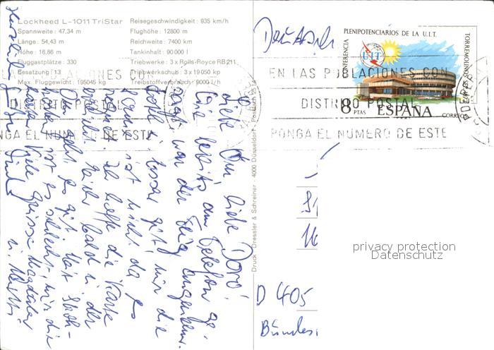 alte Postkarte Flugzeuge Zivil LTU Lockheed L-1011 TriStar postalisch gelaufen Erhaltung siehe scans