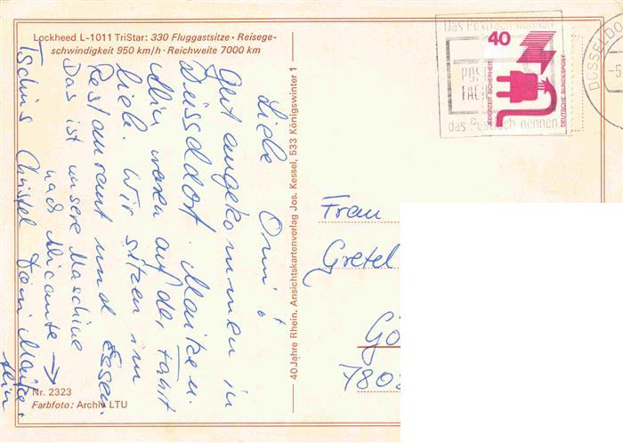 74034463 alte Postkarte Flugzeuge Zivil LTU Lockheed L-1011 postalisch gelaufen Erhaltung siehe scans [IrynaD87] KatCode: 22120000001300