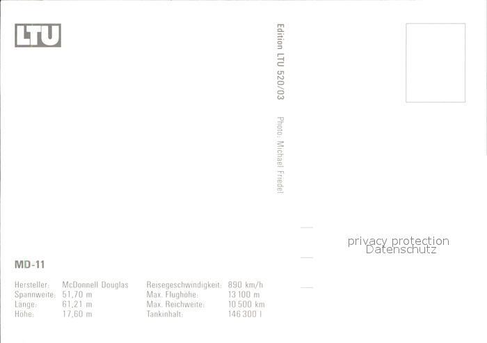 Flugzeuge Zivil LTU MD-11 postalisch nicht gelaufen Erhaltung siehe scans