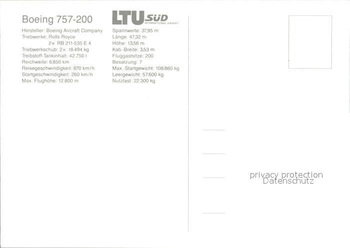 Flugzeuge Zivil LTU Sued Boeing 757-200 postalisch nicht gelaufen Erhaltung siehe scans