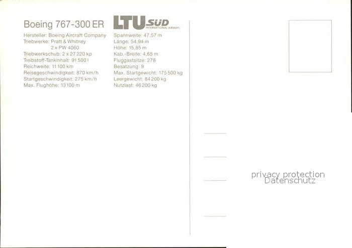 Flugzeuge Zivil LTU-Sued Boeing 767-300 ER postalisch nicht gelaufen Erhaltung siehe scans
