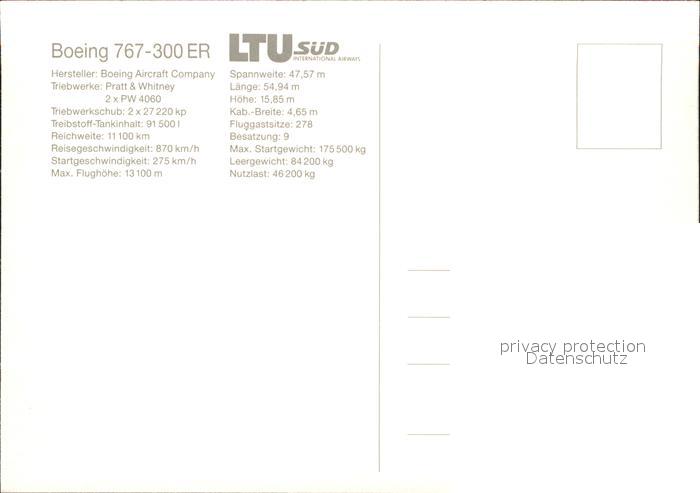 Flugzeuge Zivil LTU Sued Boeing 767-300 ER postalisch nicht gelaufen Erhaltung siehe scans