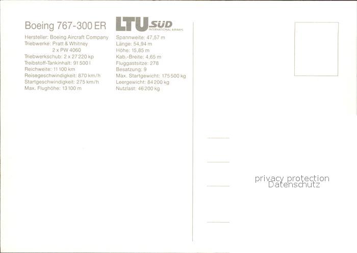 72226470 Flugzeuge Zivil LTU Süd Boeing 767-300ER KatCode 22120000001300