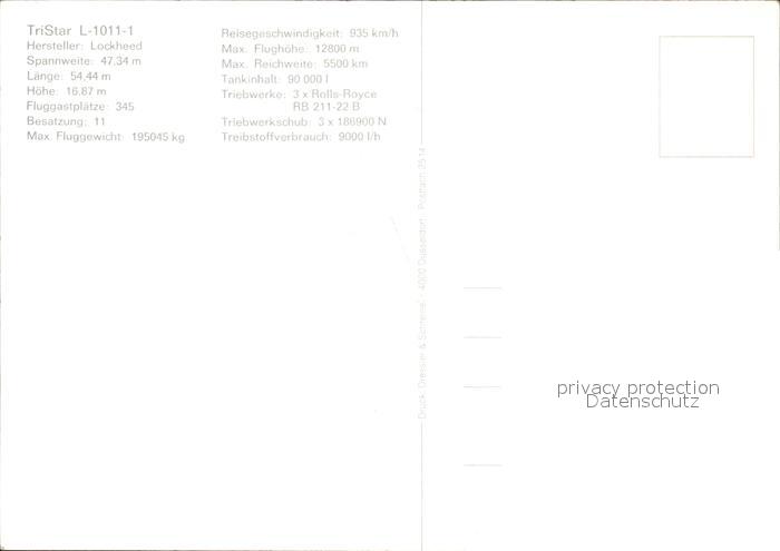 Flugzeuge Zivil LTU TriStar L-1011-1 postalisch nicht gelaufen Erhaltung siehe scans