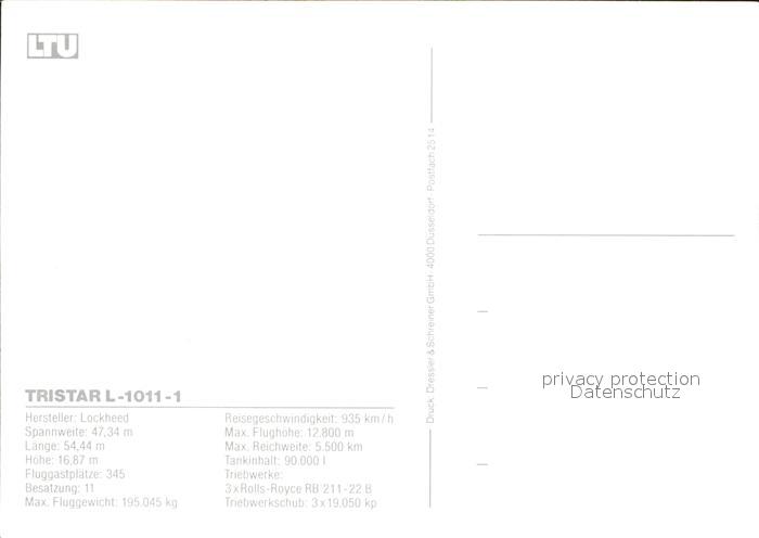 Flugzeuge Zivil LTU Tristar L-1011-1 postalisch nicht gelaufen Erhaltung siehe scans