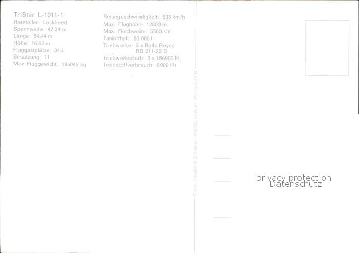 Flugzeuge Zivil LTU TriStar L-1011-1 Lockheed postalisch nicht gelaufen Erhaltung siehe scans