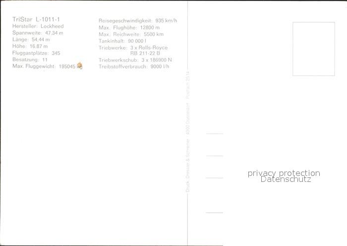 Flugzeuge Zivil LTU TriStar L-1011-1 Lockheed postalisch nicht gelaufen Erhaltung siehe scans