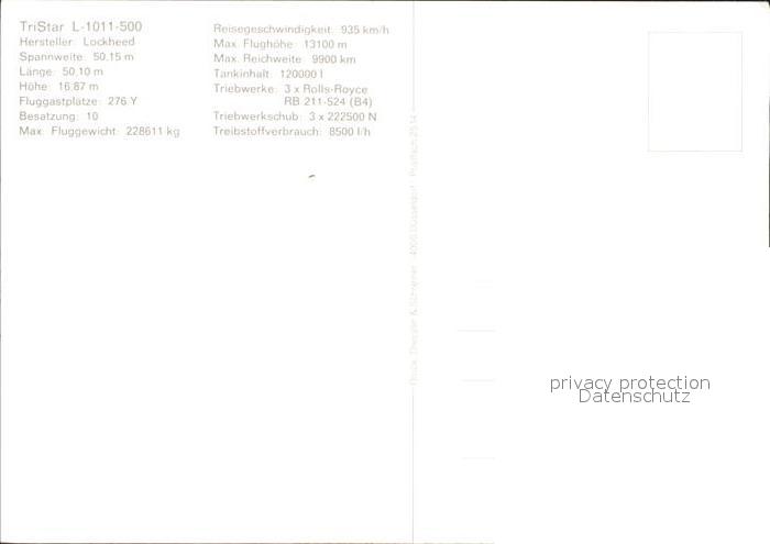 Flugzeuge Zivil LTU TriStar L-1011-500 Cockpit postalisch nicht gelaufen Erhaltung siehe scans