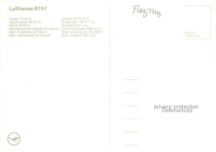 74154609 FLUGZEUGE ZIVIL Lufthansa B747 postalisch nicht gelaufen Erhaltung siehe scans [SanaeD93] KatCode: 22120000001300