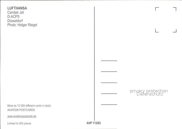 Flugzeuge Zivil LUFTHANSA Candair Jet D-ACPS Duesseldorf postalisch nicht gelaufen Erhaltung siehe scans